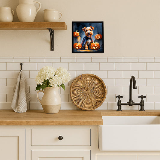 Airedale Terrier Puppy Halloween Framed Metal Print