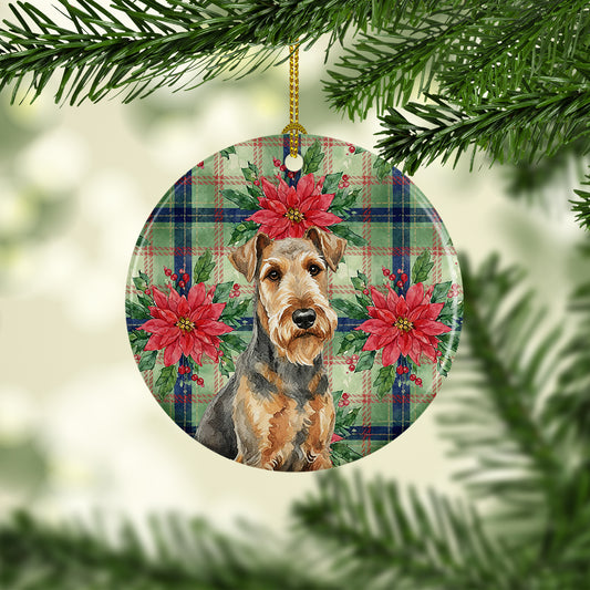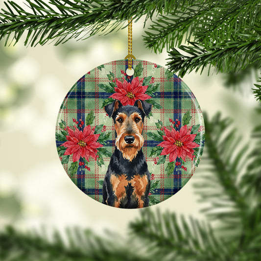 Airedale Terrier Christmas PoinsettIas Ceramic Ornament