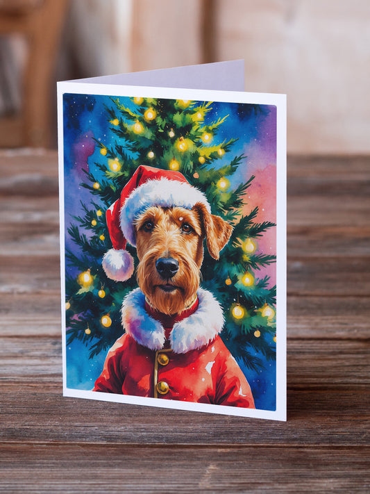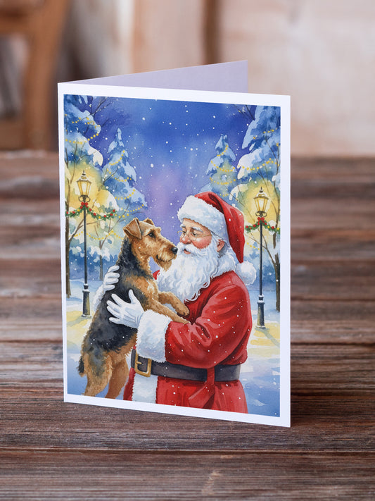 Airedale Terrier with Santa Claus Greeting Cards Pack of 8