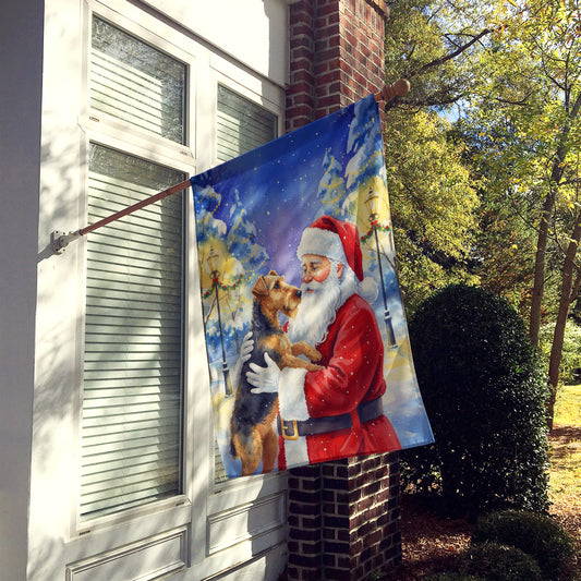 Airedale Terrier with Santa Claus Porcelain Ornament