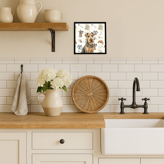 Grizzle Airedale Terrier Coffee Bar Framed Metal Print