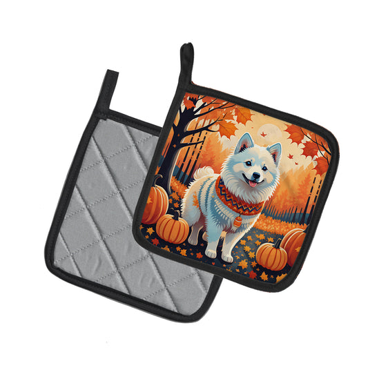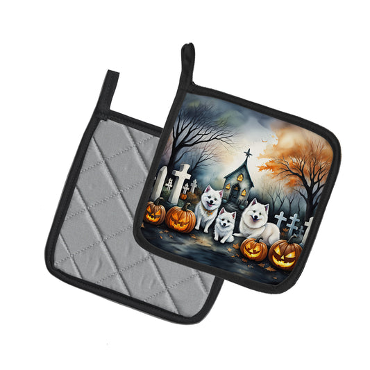 American Eskimo Spooky Halloween Pair of Pot Holders