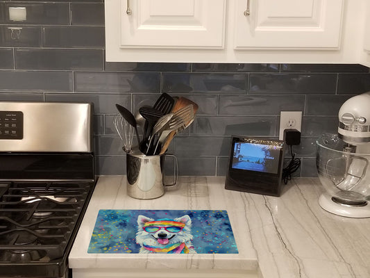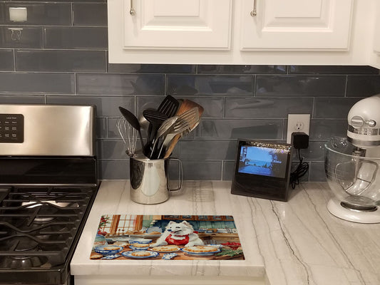 American Eskimo Fall Kitchen Pumpkins Glass Cutting Board