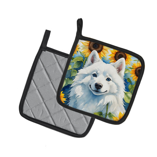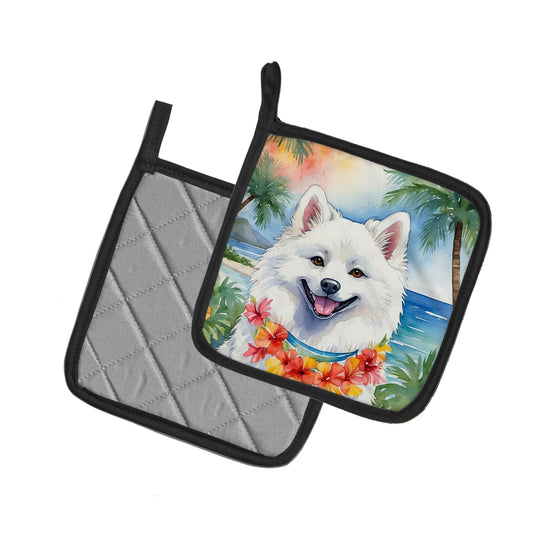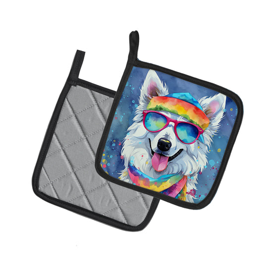 American Eskimo Hippie Dawg Pair of Pot Holders