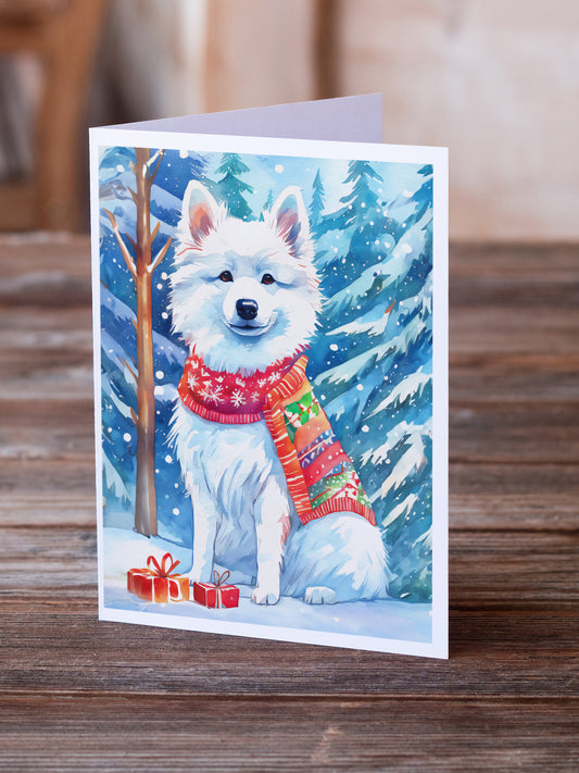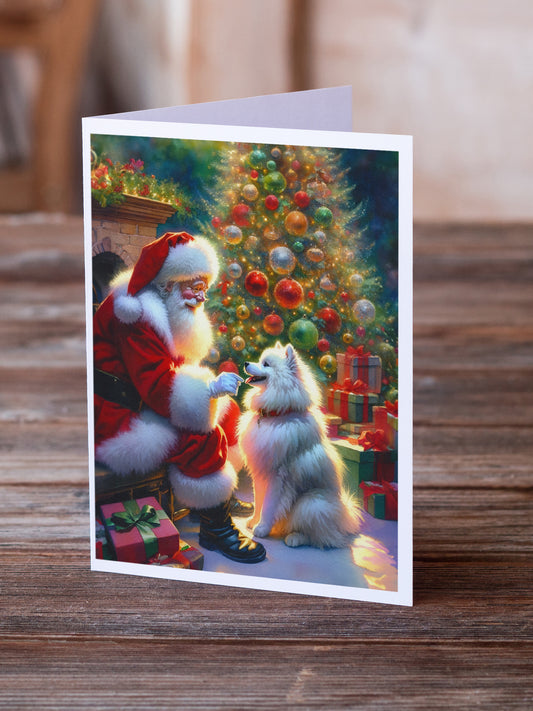American Eskimo and Santa Claus Greeting Cards Pack of 8