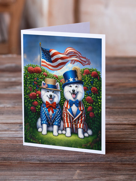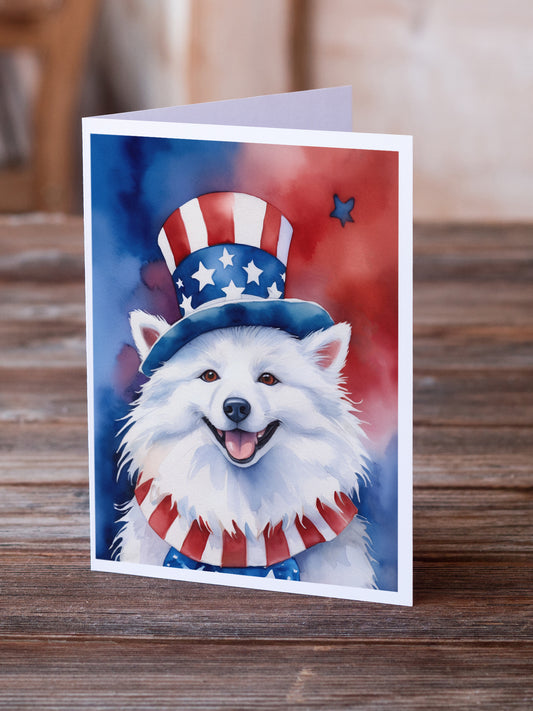 American Eskimo Patriotic American Greeting Cards Pack of 8