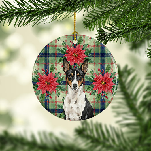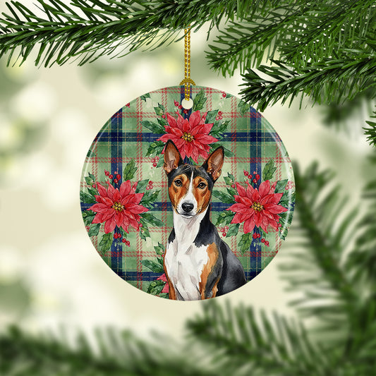 Tricolor and White Basenji Christmas PoinsettIas Ceramic Ornament