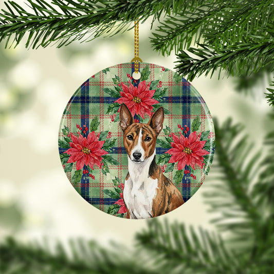 Brindle and White Basenji Christmas PoinsettIas Ceramic Ornament