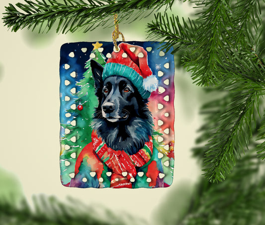 Belgian Sheepdog Holiday Christmas Porcelain Ornament
