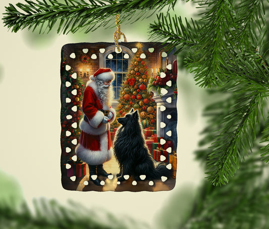 Belgian Sheepdog and Santa Claus Porcelain Ornament