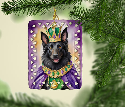 Belgian Sheepdog King of Mardi Gras Porcelain Ornament