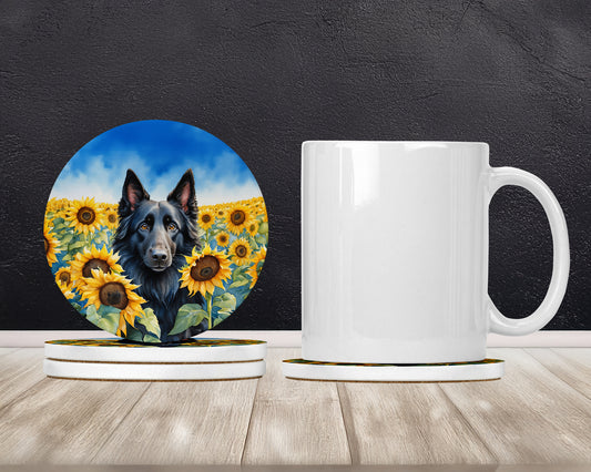 Belgian Sheepdog in Sunflowers Large Sandstone Coasters Pack of 4