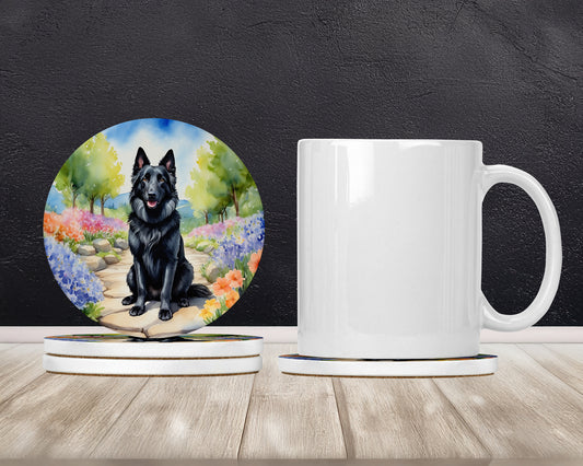 Belgian Sheepdog Spring Path Large Sandstone Coasters Pack of 4