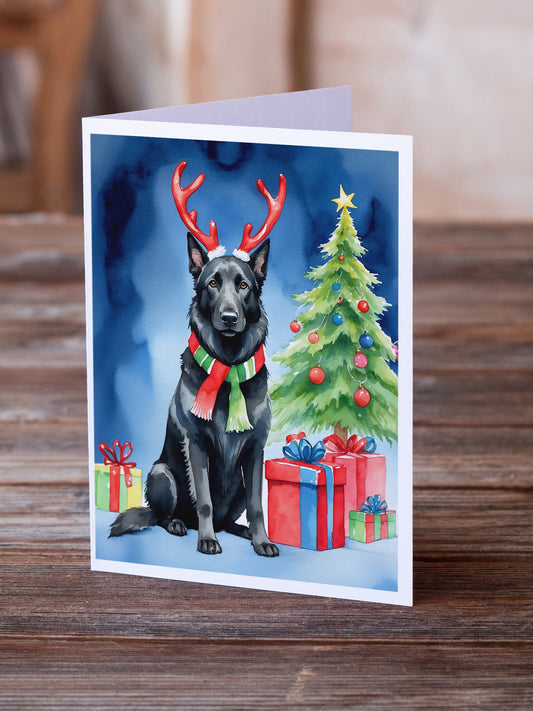 Belgian Sheepdog Christmas Reindeer Greeting Cards Pack of 8