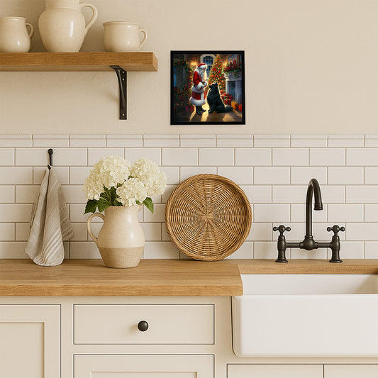 Belgian Sheepdog and Santa Claus Framed Metal Print
