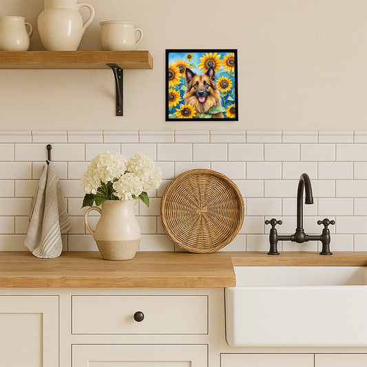 Belgian Tervuren in Sunflowers Large Sandstone Coasters Pack of 4