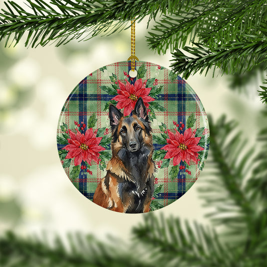 Belgian Tervuren Christmas PoinsettIas Ceramic Ornament