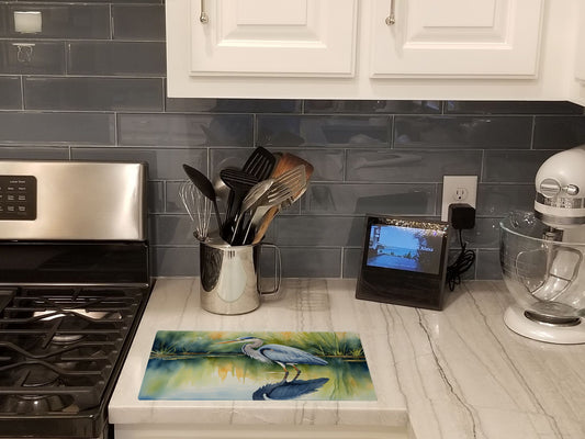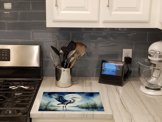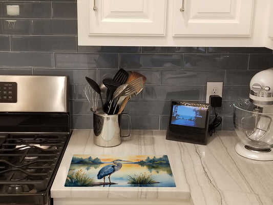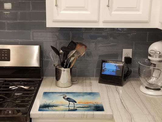 Blue Heron Barely Lit Sky Glass Cutting Board