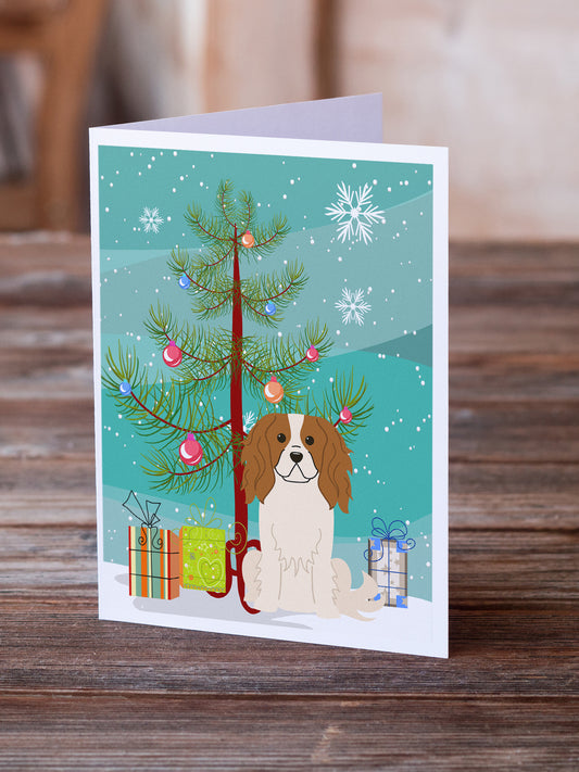 Merry Christmas Tree Cavalier Spaniel Greeting Cards Pack of 8