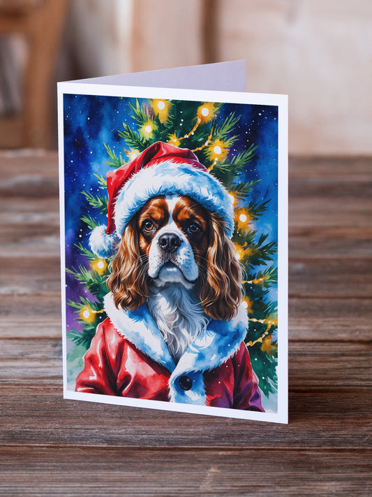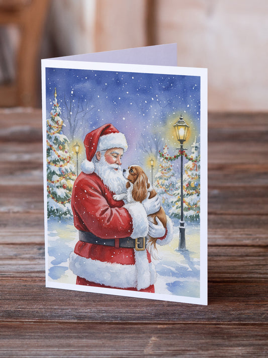 Cavalier Spaniel with Santa Claus Greeting Cards Pack of 8