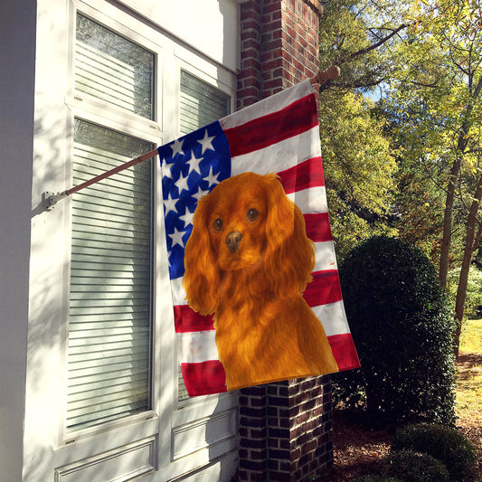 Ruby Cavalier Spaniel American Flag Garden Flag