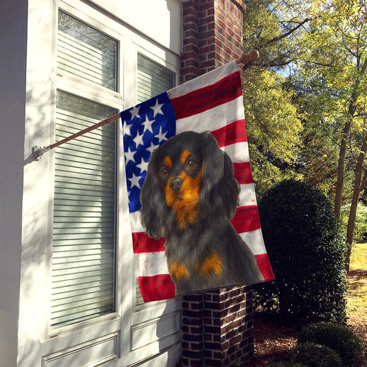 Black and Tan Cavalier Spaniel American Flag House Flag
