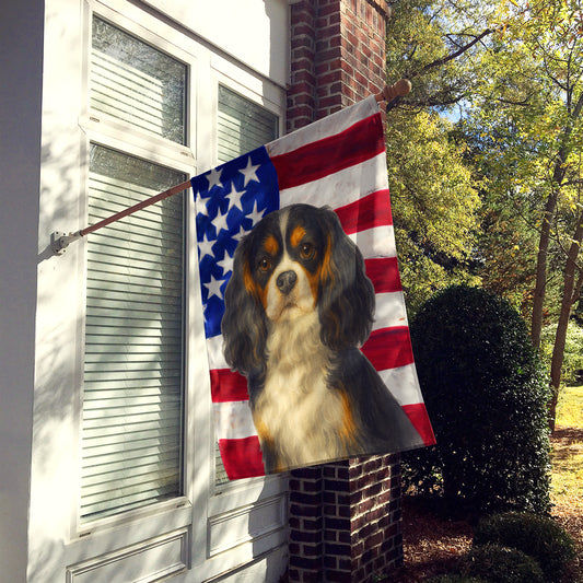 Tricolor Cavalier Spaniel American Flag Garden Flag