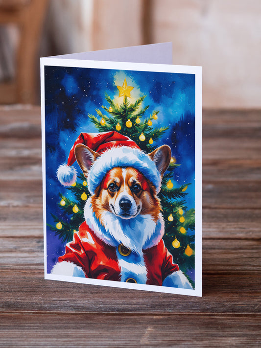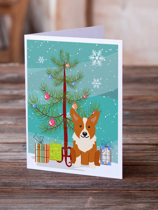 Merry Christmas Tree Corgi Greeting Cards Pack of 8