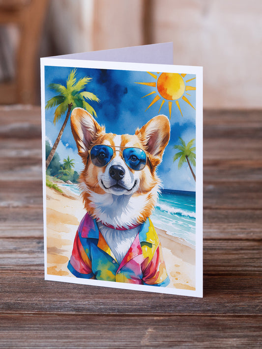 Corgi Summer Beach Time Greeting Cards Pack of 8