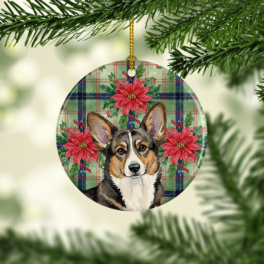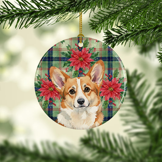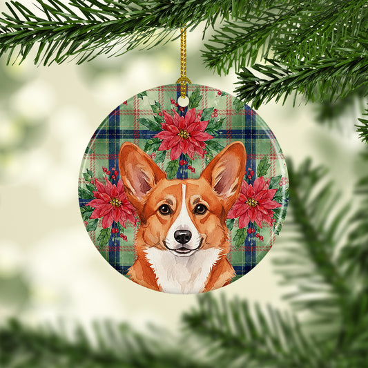 Red Cardigan Welsh Corgi Christmas PoinsettIas Ceramic Ornament