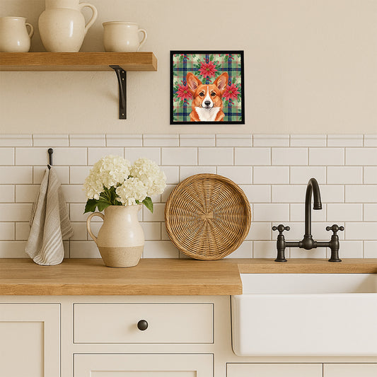 Red Cardigan Welsh Corgi Christmas PoinsettIas Framed Metal Print