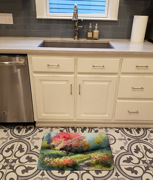 North Carolina Dogwoods in Watercolor Memory Foam Kitchen Mat