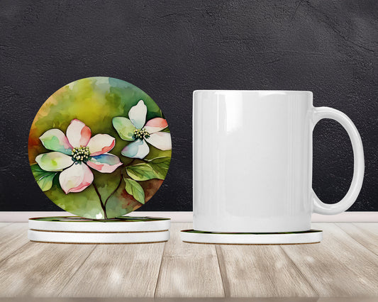 Virginia American Dogwood in Watercolor Large Sandstone Coasters Pack of 4
