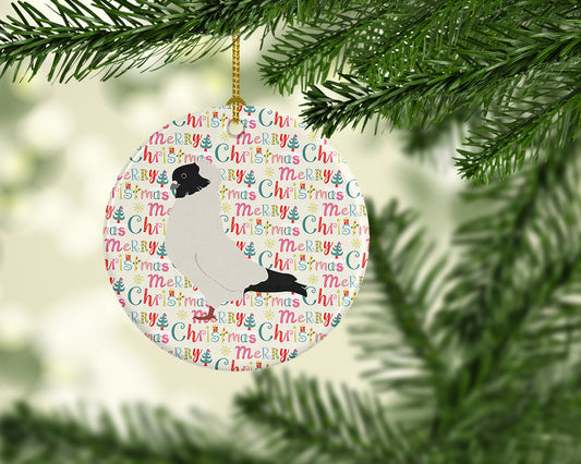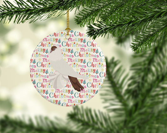 Silver Fantail Pigeon Christmas Ceramic Ornament