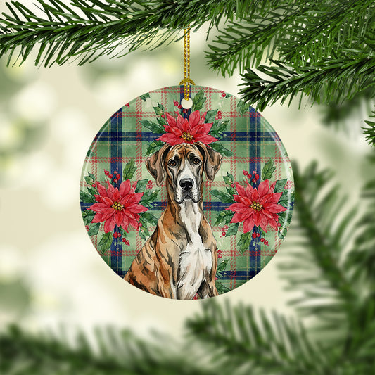 Brindle Great Dane Christmas PoinsettIas Ceramic Ornament