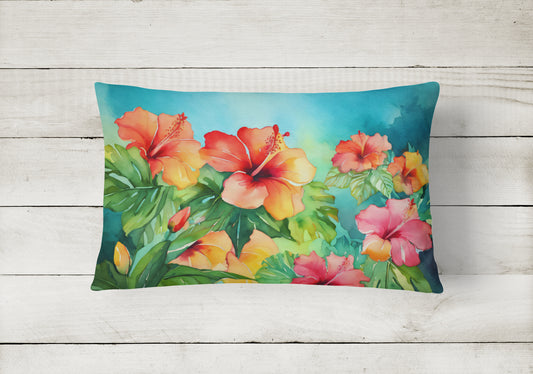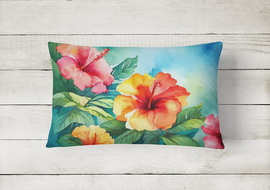 Hawaii Hawaiian Hibiscus in Watercolor Throw Pillow