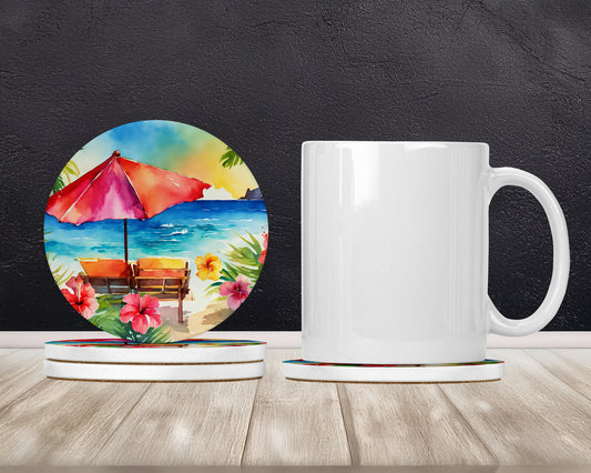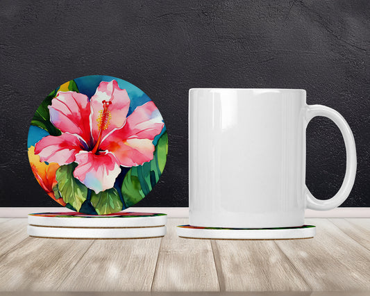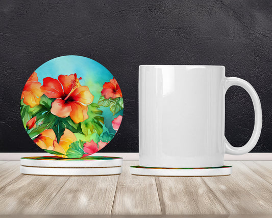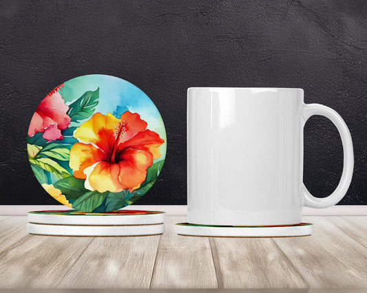 Hawaii Hawaiian Hibiscus in Watercolor Large Sandstone Coasters Pack of 4