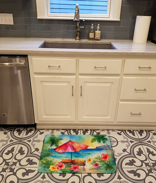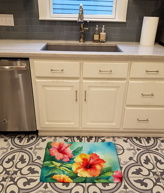 Hawaii Hawaiian Hibiscus in Watercolor Memory Foam Kitchen Mat