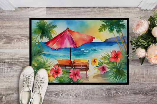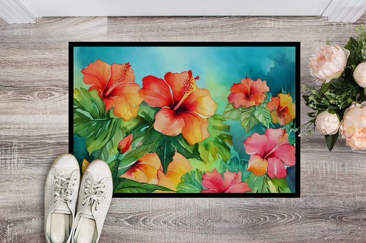 Hawaii Hawaiian Hibiscus in Watercolor Doormat