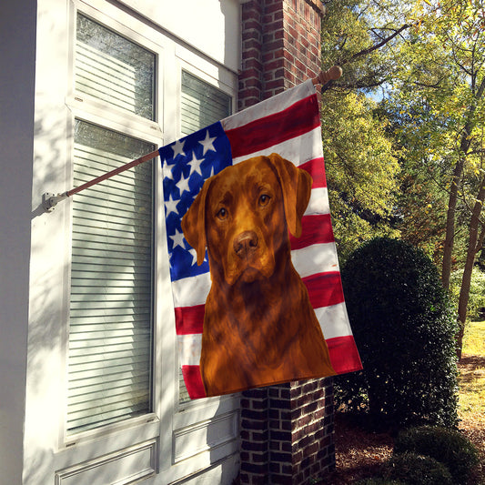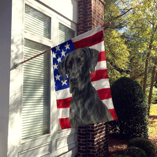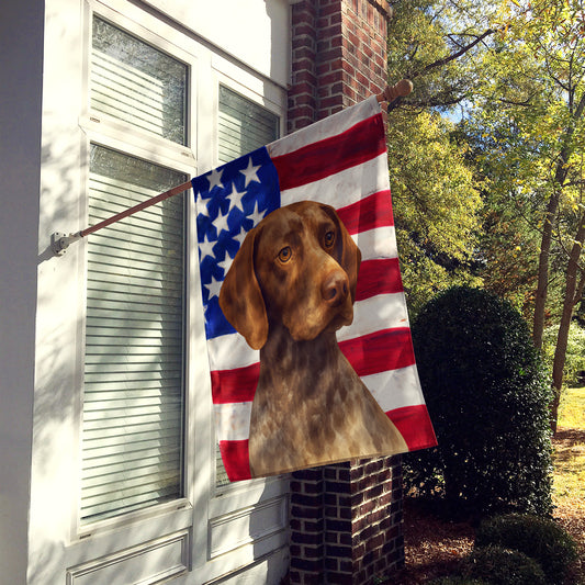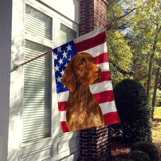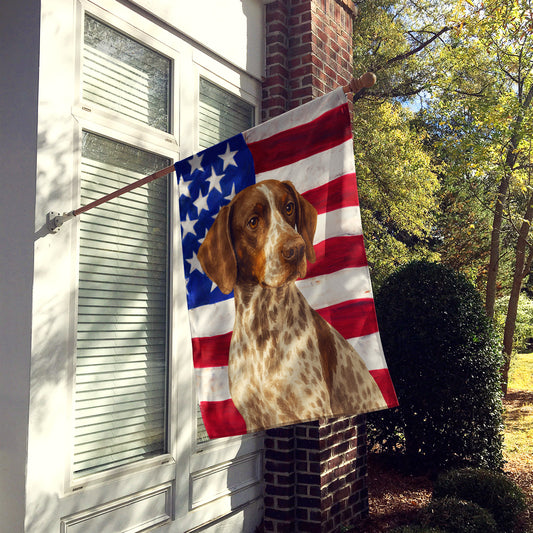 Liver and White German Shorthaired Pointer American Flag House Flag