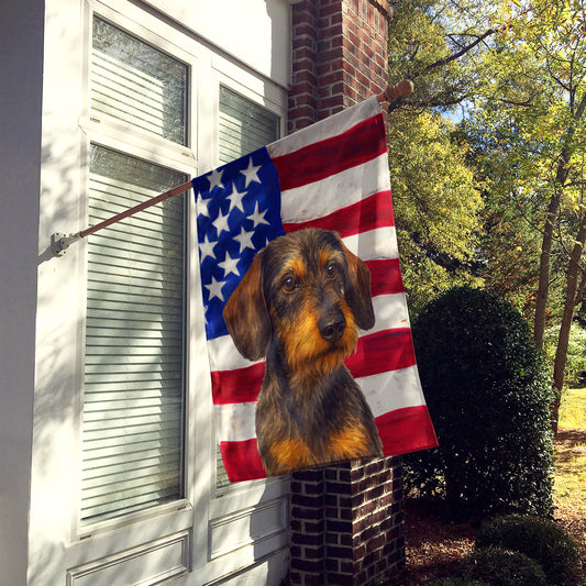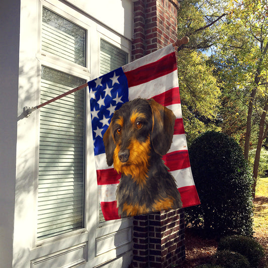 Wirehaired Wild Boar Dachshund American Flag House Flag