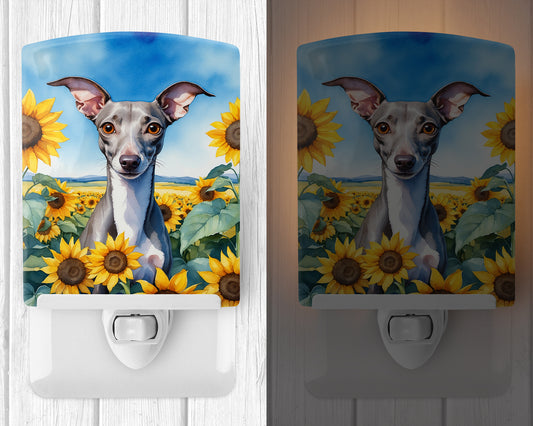 Italian Greyhound in Sunflowers Ceramic Night Light