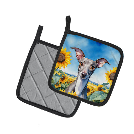 Italian Greyhound in Sunflowers Pair of Pot Holders