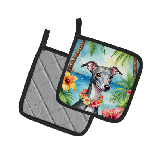 Italian Greyhound Christmas Flowers Pair of Pot Holders