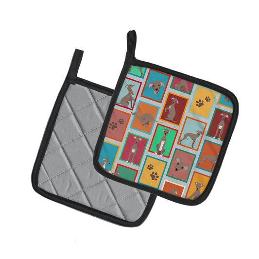 Lots of Fawn Italian Greyhound Pair of Pot Holders