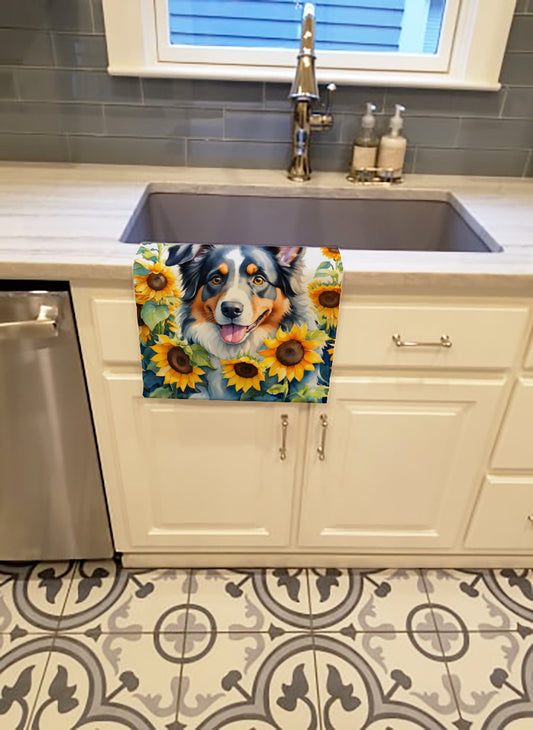 Australian Cattle Dog in Sunflowers Kitchen Towel