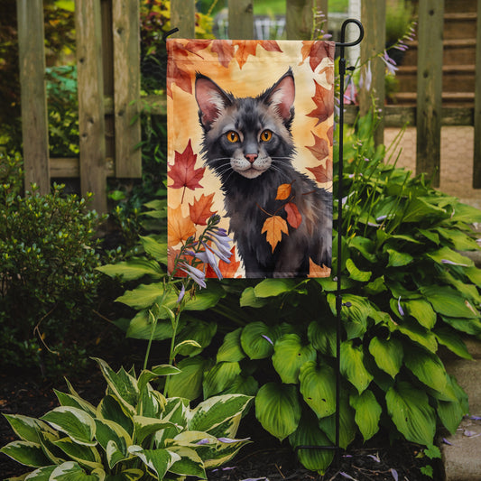 Lykoi Cat in Fall Leaves Garden Flag