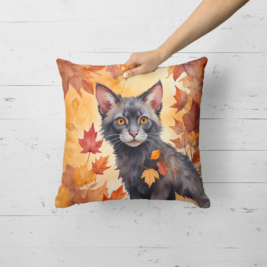 Lykoi Cat in Fall Leaves Throw Pillow