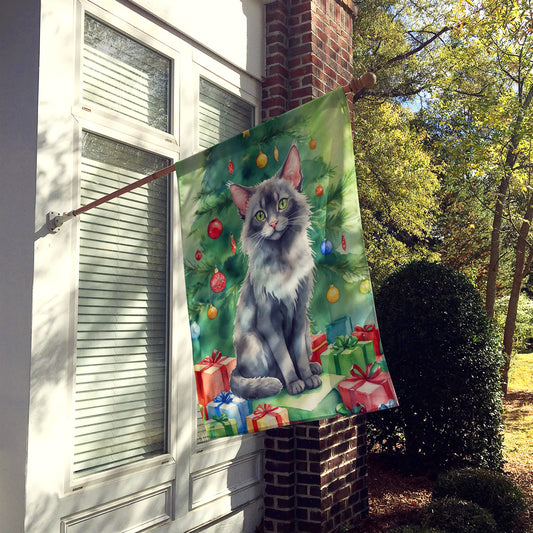 Lykoi Cat By the Christmas Tree House Flag