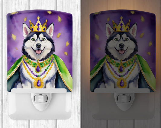 Siberian Husky King of Mardi Gras Ceramic Night Light